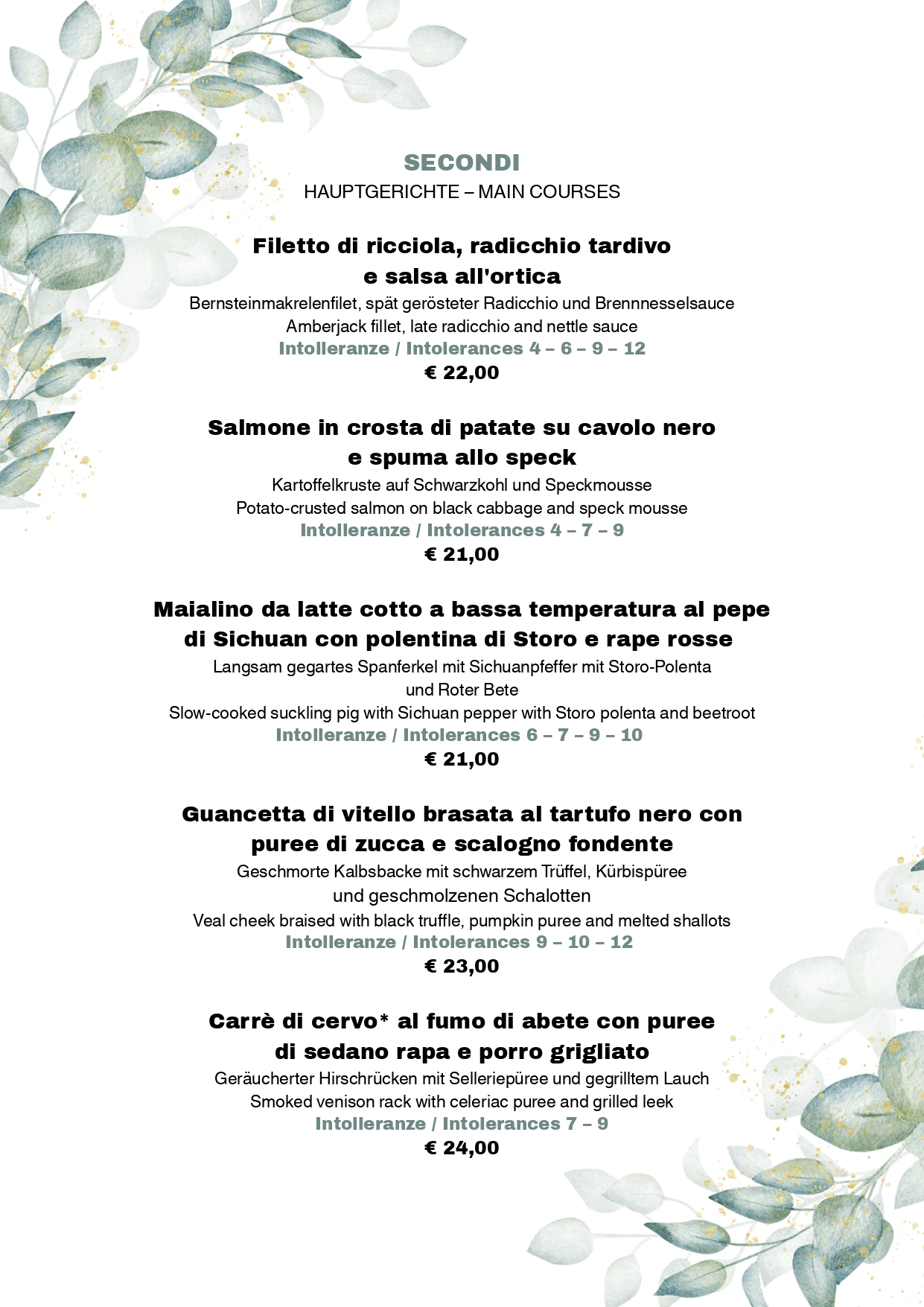 Menu Ristorante